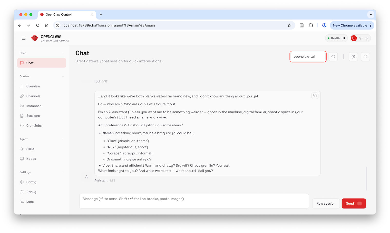 After completing the onboarding process, the OpenClaw service will automatically start and run in the background.