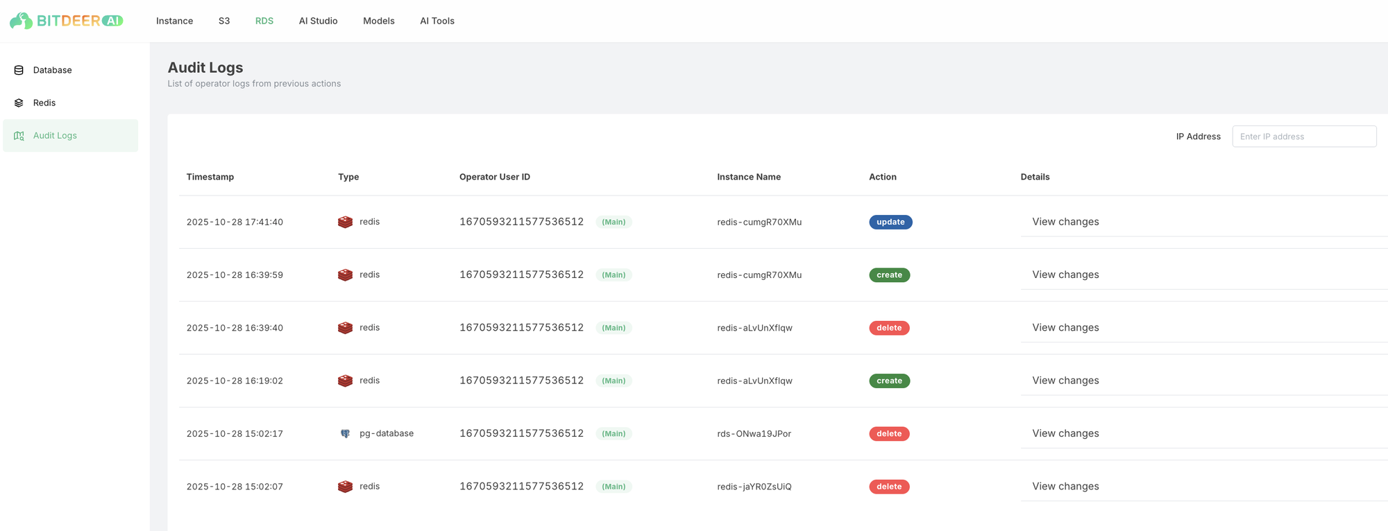 - Operation Type: Filter by specific actions (create, modify, delete, restart, etc.)